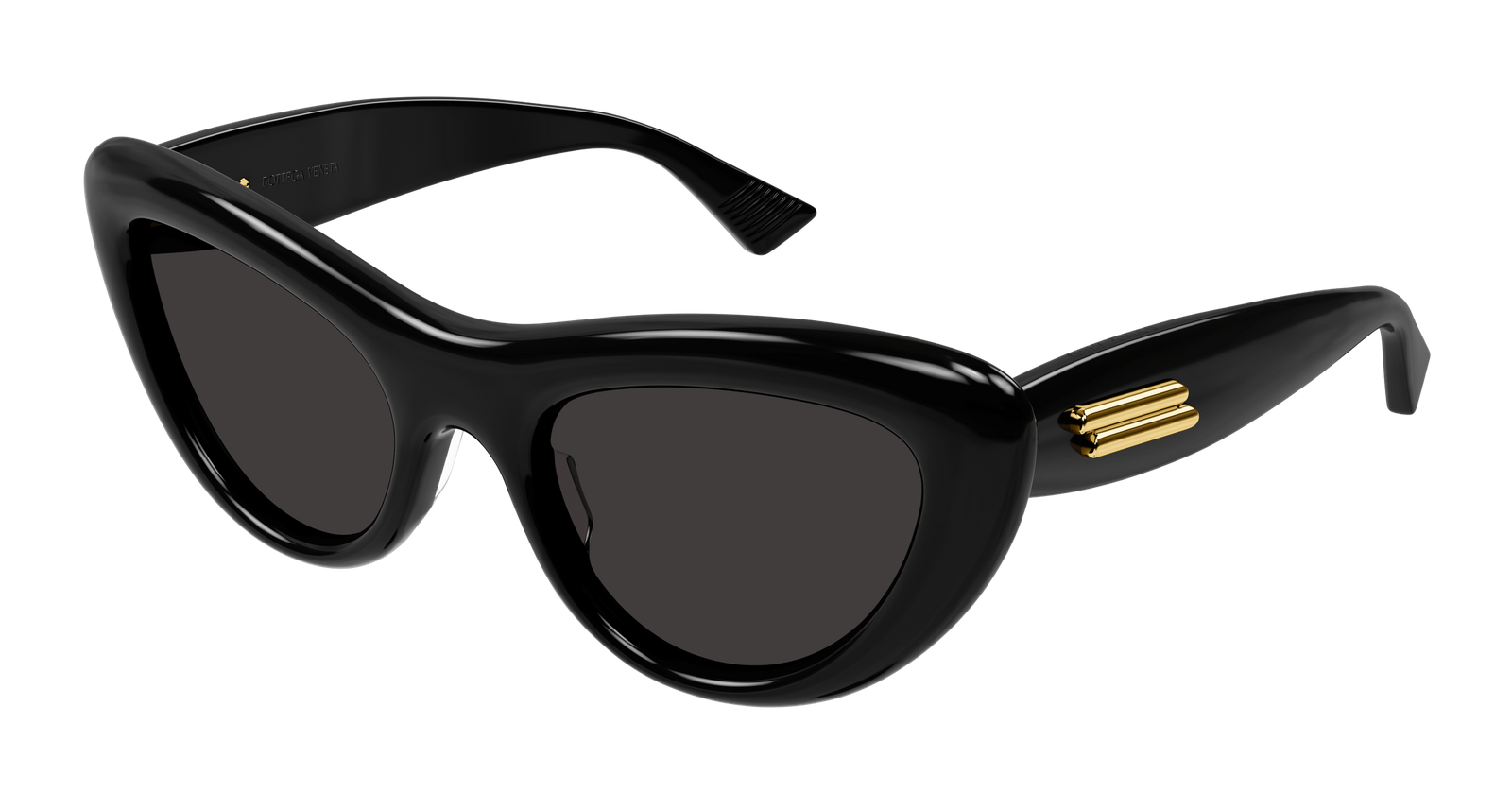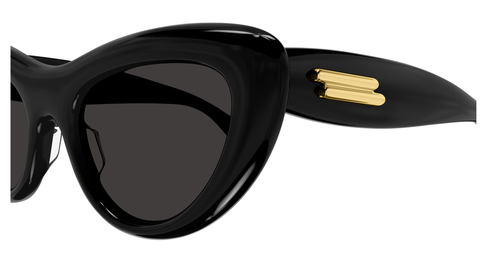 - Model cat-eye z pełnego, grubego tworzywa o zaokrąglonym wykończeniu. Złoty emblemat marki na zausznikach. Najnowsza propozycja okularów przeciwsłonecznych dla Pań od domu mody Bottega Veneta.