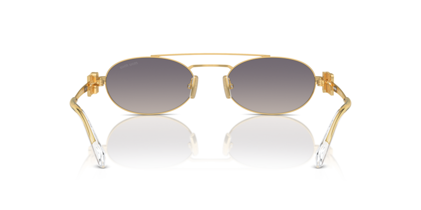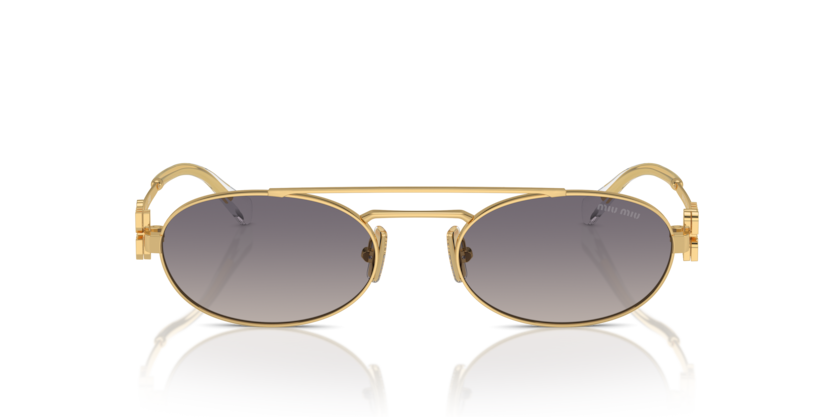 - Miu Miu na nowo odkrywa poprzedni popularny model z wąskimi owalnymi soczewkami i eleganckimi liniami. Na metalowych zausznikach wyróżnia się logo Miu Miu, które jednocześnie pełni rolę zawiasu i eleganckiego detalu.