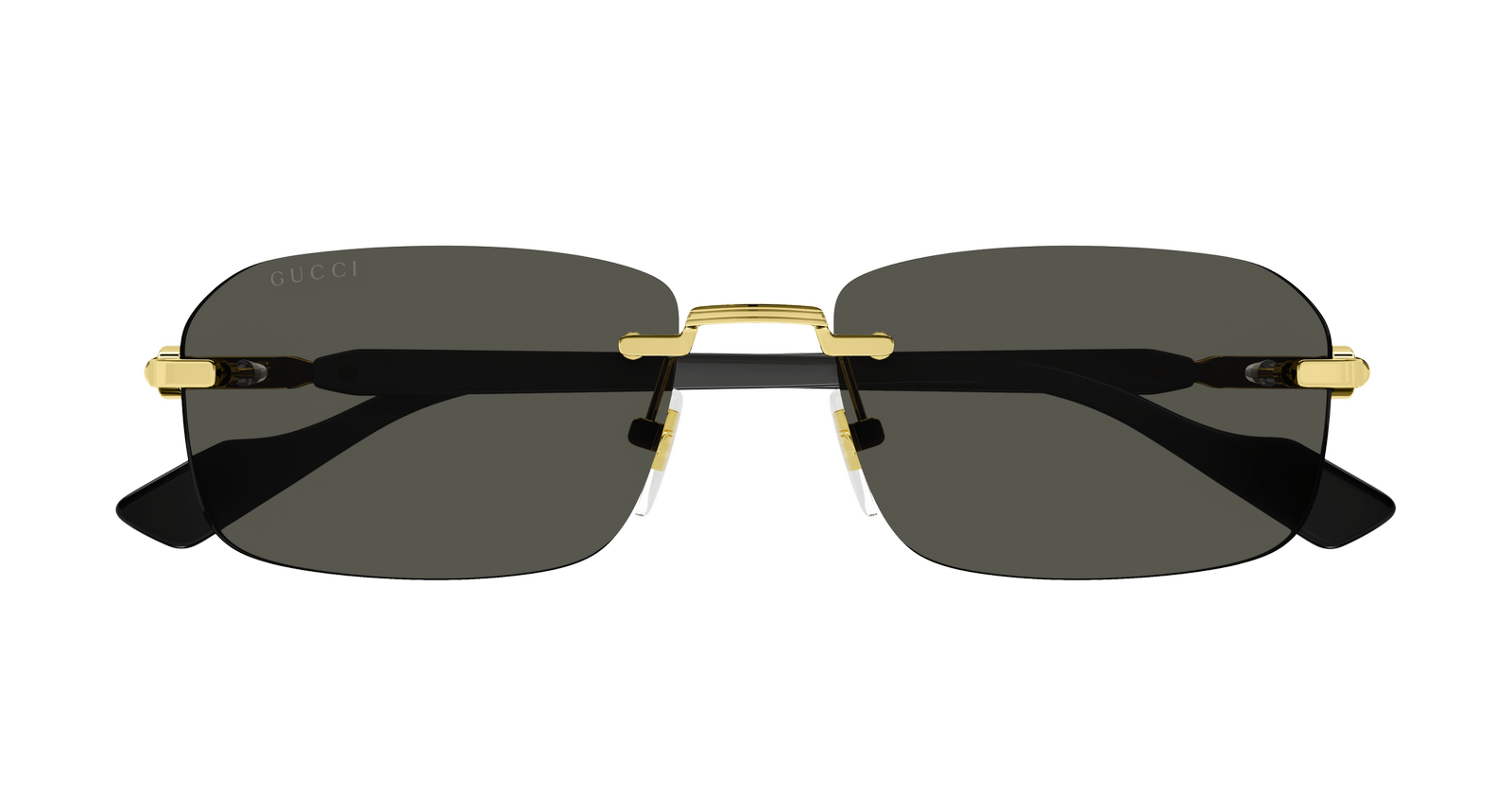 • Model dla mężczyzn z najnowszej kolekcji Gucci nawiązujący do kolekcji vintage. Bezramkowy model w wydaniu streetwear, wąski i podłużny fason w złotym wykończeniu mostka i zauszników.
