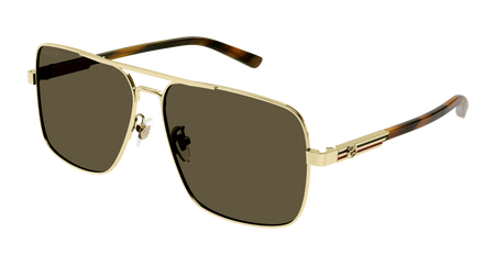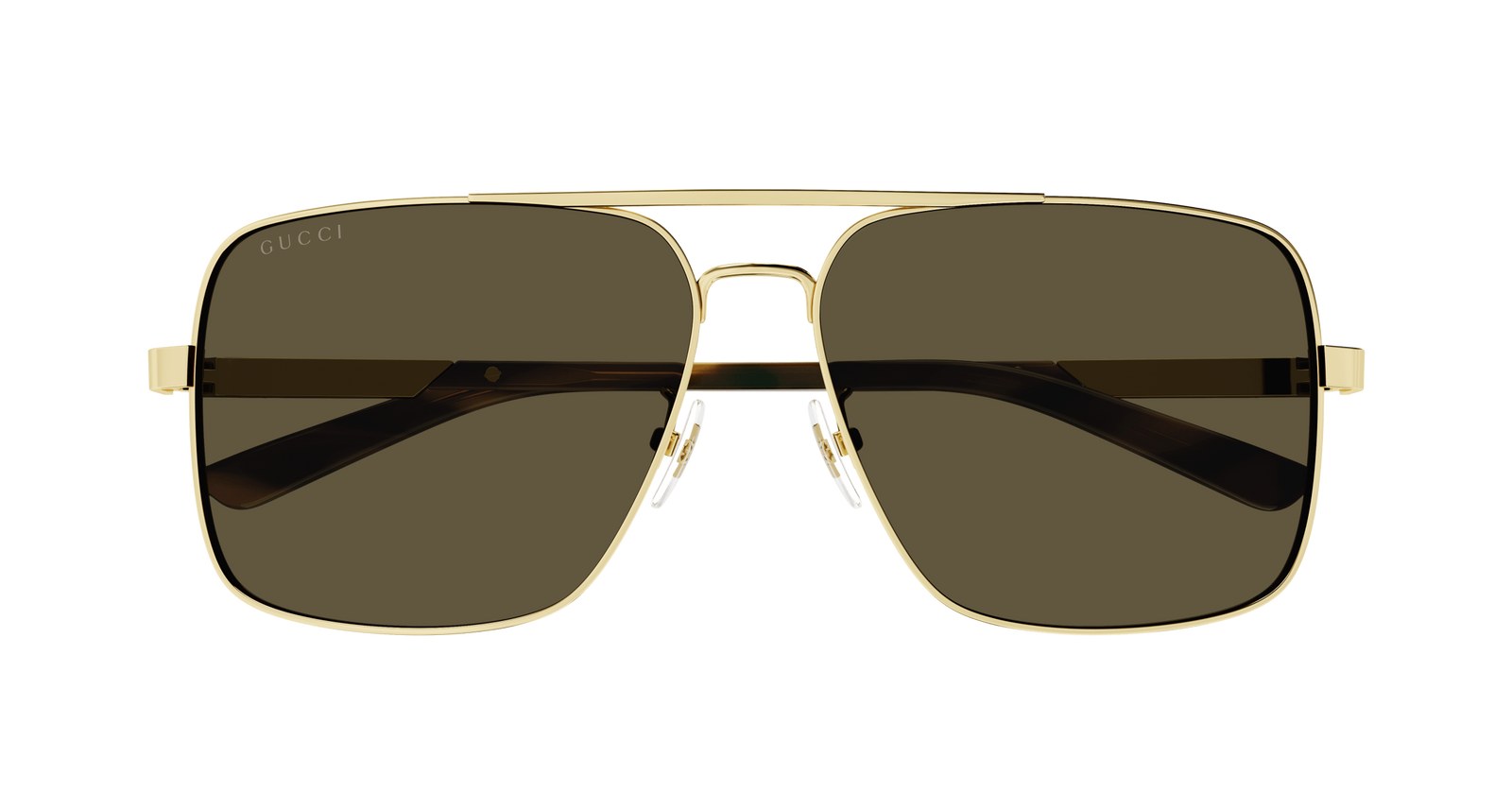 Brązowe soczewki idealnie komponują się ze złotą oprawą, tworząc spójny i elegancki efekt wizualny. Pełne zabarwienie soczewek zapewnia skuteczną ochronę przed intensywnym światłem słonecznym, a jednocześnie gwarantuje komfort widzenia w słoneczne dni. Gucci GG 1289S 002 to okulary przeciwsłoneczne, które wyróżniają się dopracowanymi detalami i charakterystycznym stylem marki.